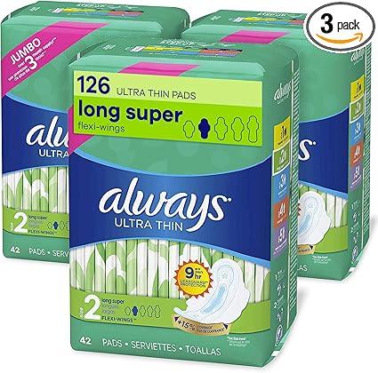 Amazoncom Always Ultra Thin Feminine Pads With Wings For Women Super Absorbency Unscented Size 2 126 Count Health Household