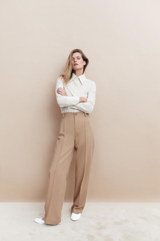 Wide Leg Trousers - Mink Zara United Kingdom