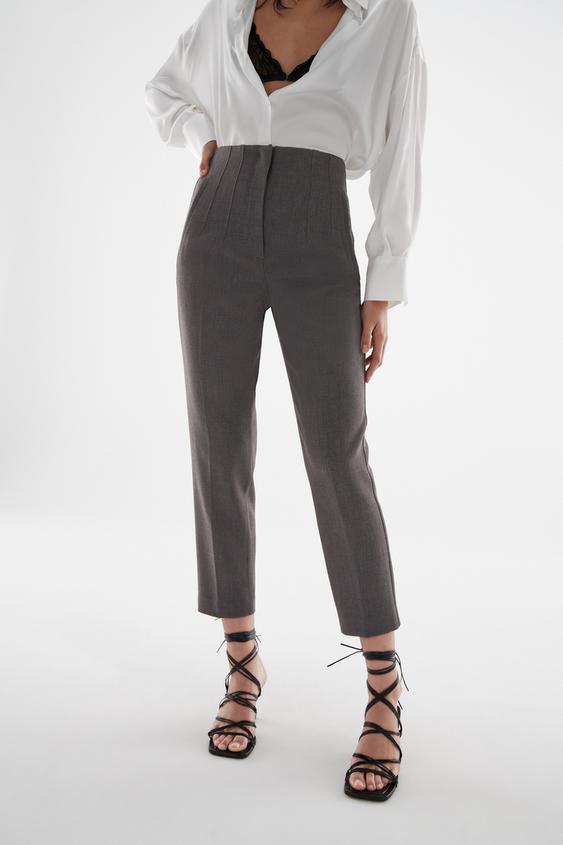 High-waist Trousers - Grey Marl Zara United Kingdom