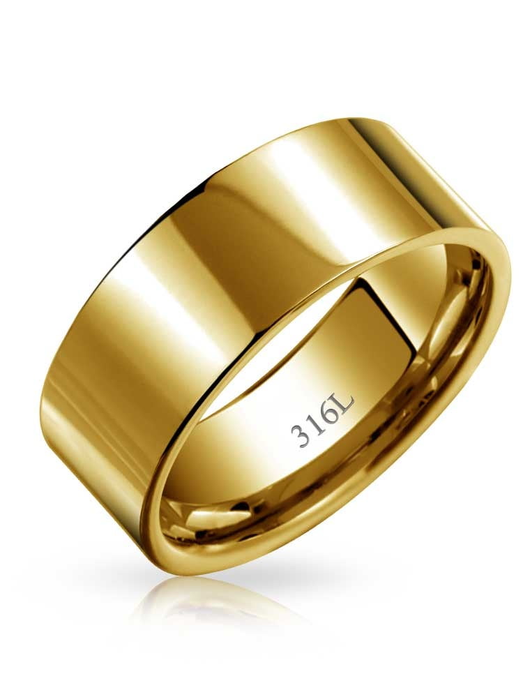 Flat Wide Cigar Wedding Band Rings For Couples For Men For Women 14k Gold Plated Stainless Steel 8mm - Walmartcom